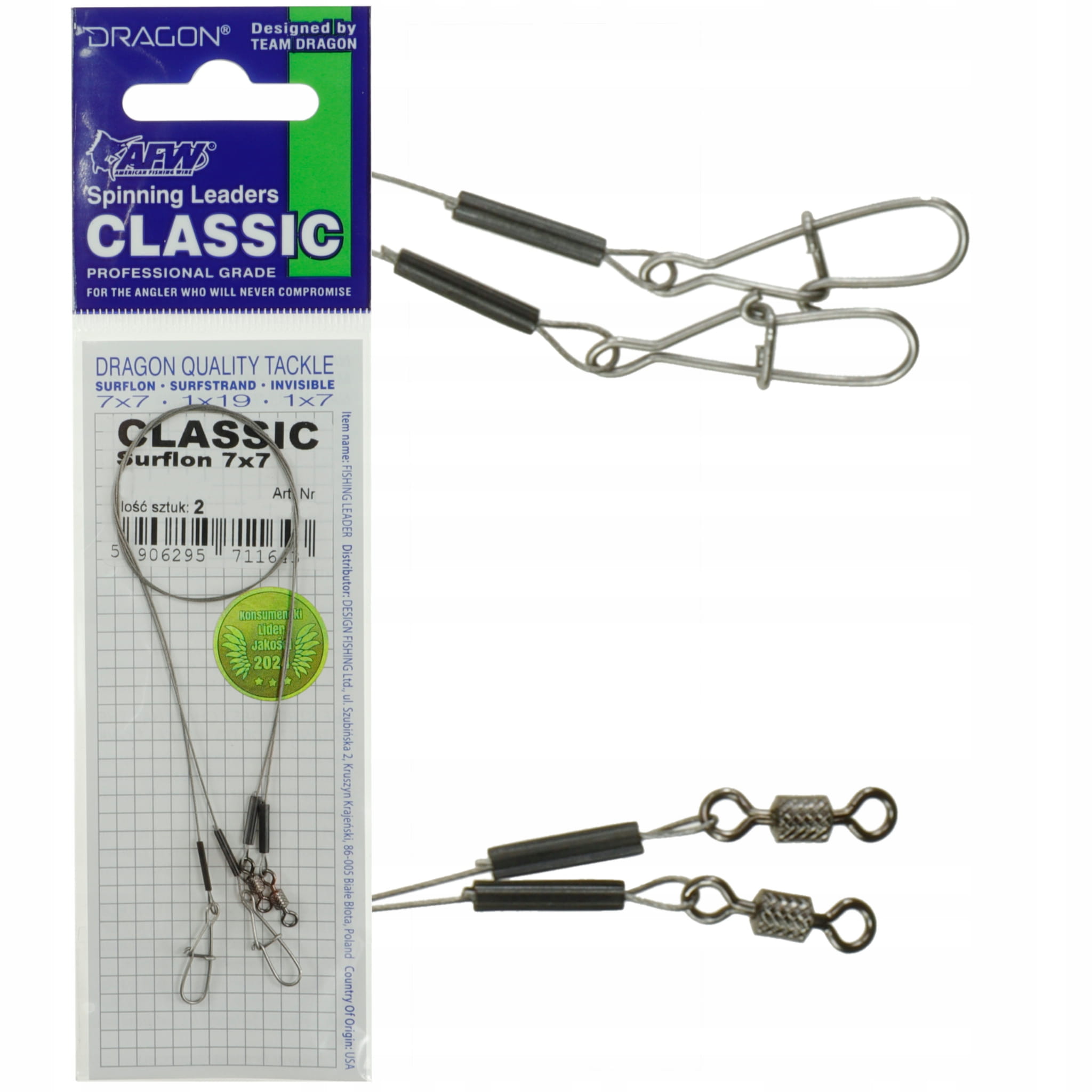 Wykonane z najwyższej jakości Surflonu splot 7x7, zaopatrzone w wyprodukowane w Polsce agrafki i krętliki. Polecane do łowienia szczupaków i dużych sandaczy, gwarantują pełną niezawodność i komfort użytkowania.