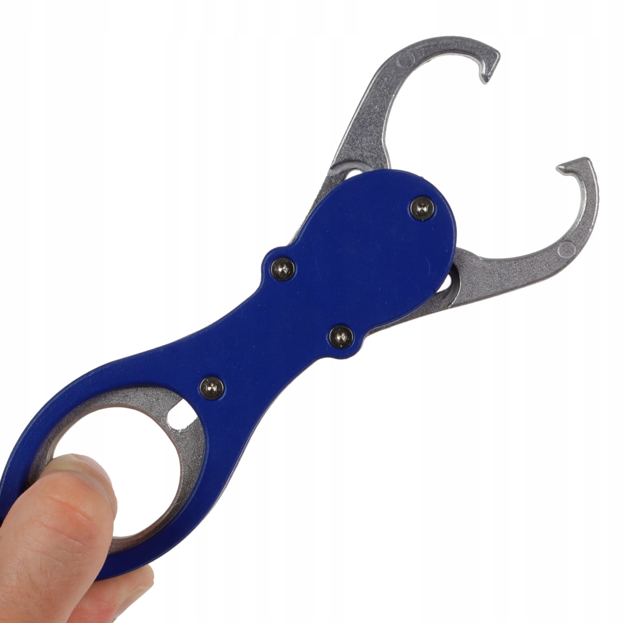 Idealne narzędzie do chwytania i wciągania ryb np. na łódź. Aluminiowa konstrukcja, gumowana, antypoślizgowa rękojeść i zbrojona linka harmonijka z karabińczykiem podnosi komfort użytkowania. Wyposażony w wagę analogową.