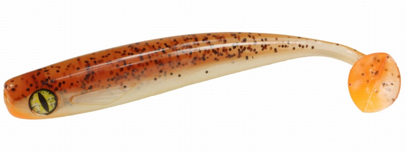 Smukła guma wykonana z super elastycznego tworzywa, pokryta lakierem epoksydowym. Oczy nawiązujące do oczu gadów, zatopione w korpusie reagują na światło UV. Agresywna praca ogonka przy jednostajnym prowadzeniu oraz z najmniejszym obciążeniem w opadzie skłoni do ataku nawet ospałe drapieżniki.