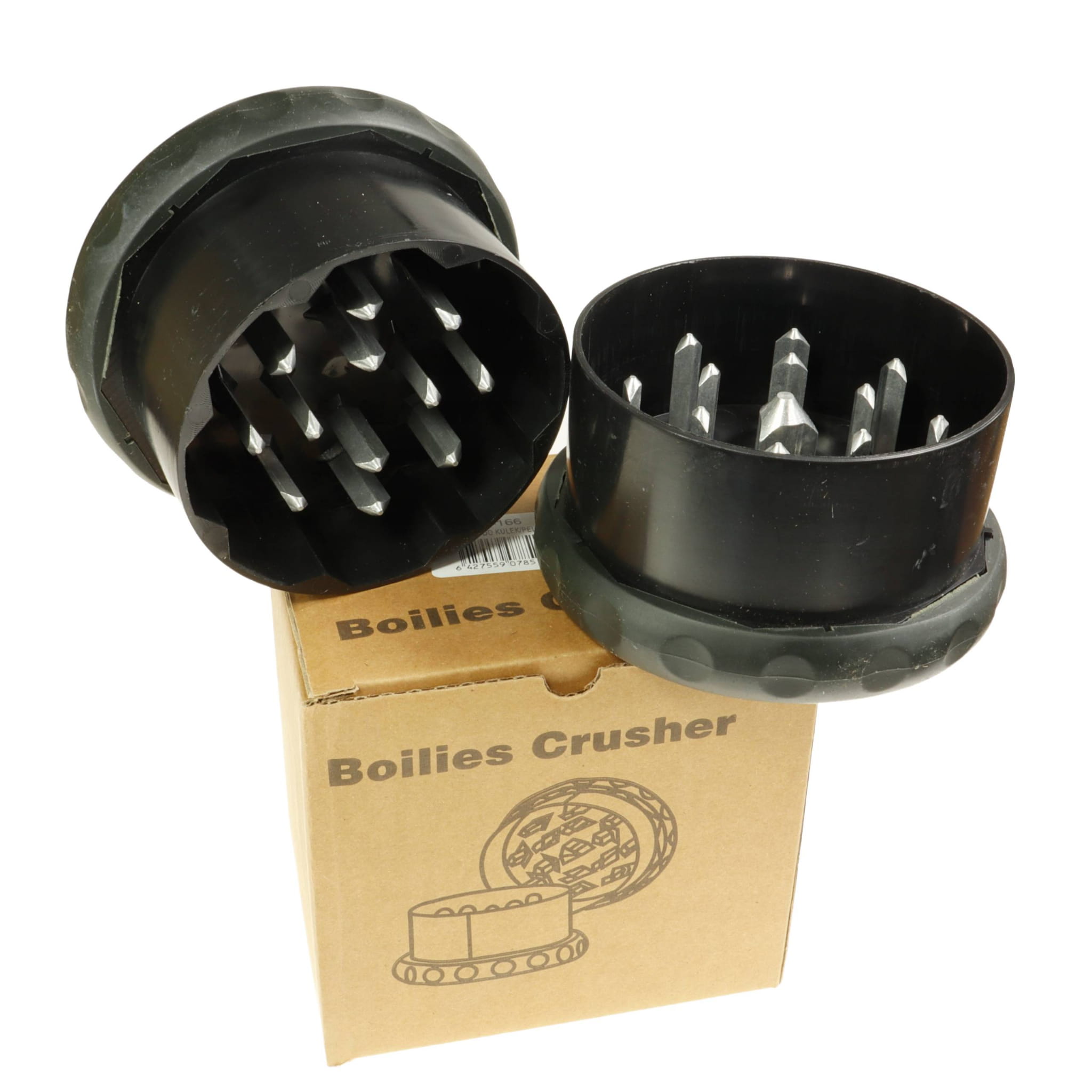 Wzmocniona kruszarka do rozdrabniania kulek proteinowych i ziaren. Dzięki metalowym, wytrzymałym zębom, bez problemu mieli nawet twardsze orzechy tygrysie czy wysuszone kulki.
