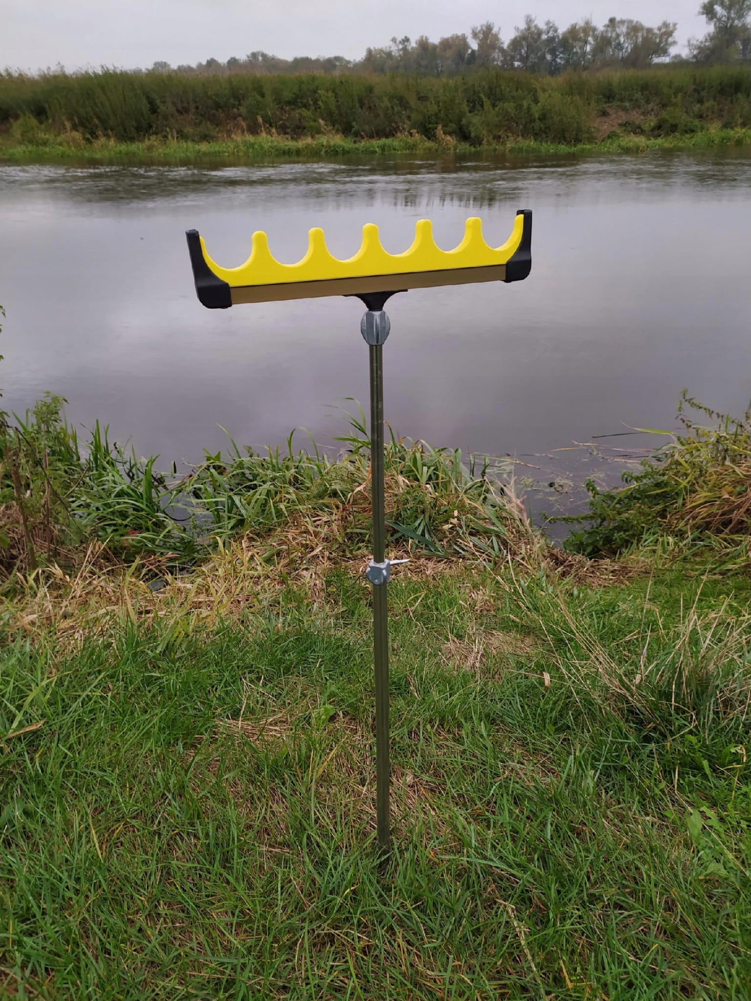 Długość całkowita 31 cm, 6 gniazd ( z pianki EVA) o szerokości 4 cm. Wykonany z solidnych materiałów. Dzięki zastosowaniu standardowego gwintu, pasuje do podpórek wędkarskich, umożliwiając rozbudowę stanowiska wędkarskiego.