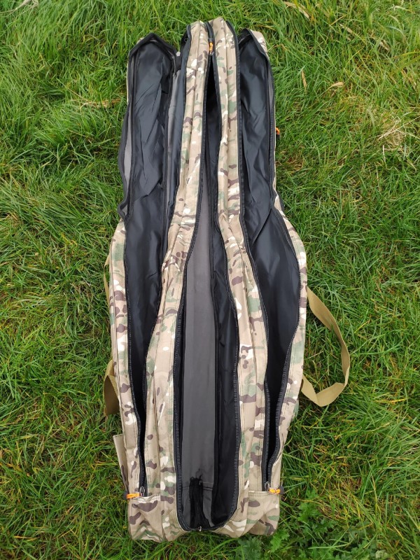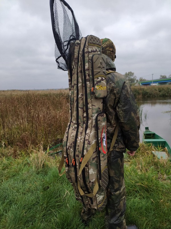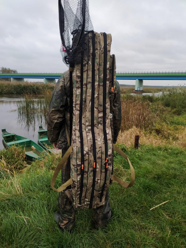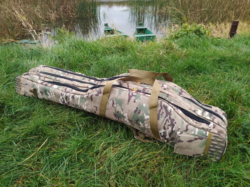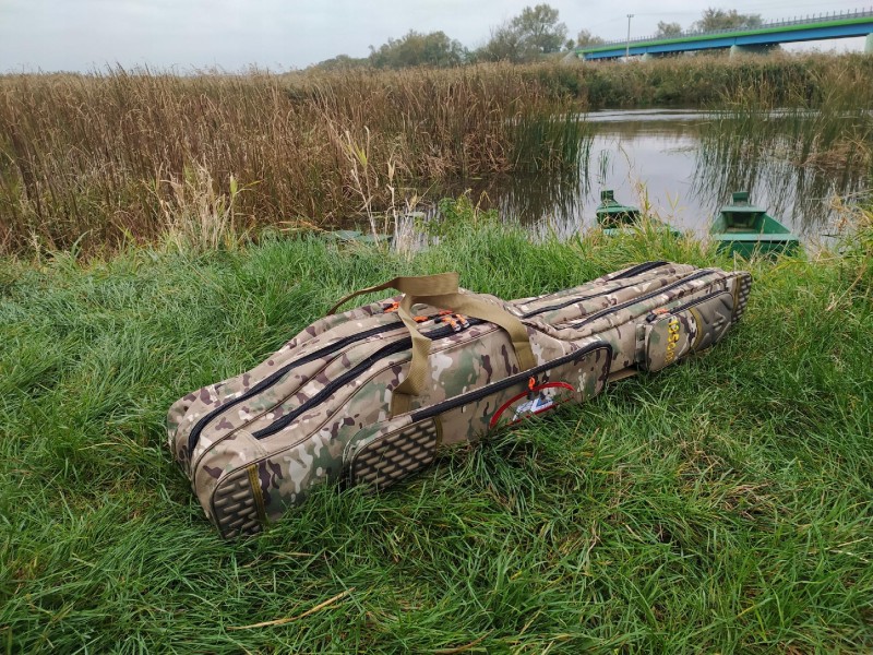 Trzy niezależne, pojemne komory na wędziska z kołowrotkami, dwie mniejsze kieszonki na akcesoria oraz miejsce do montażu np. podbieraka sprawiają, że pokrowiec pomieści i uporządkuje w jednym miejscu sprzęt potrzebny do zabrania na łowisko.