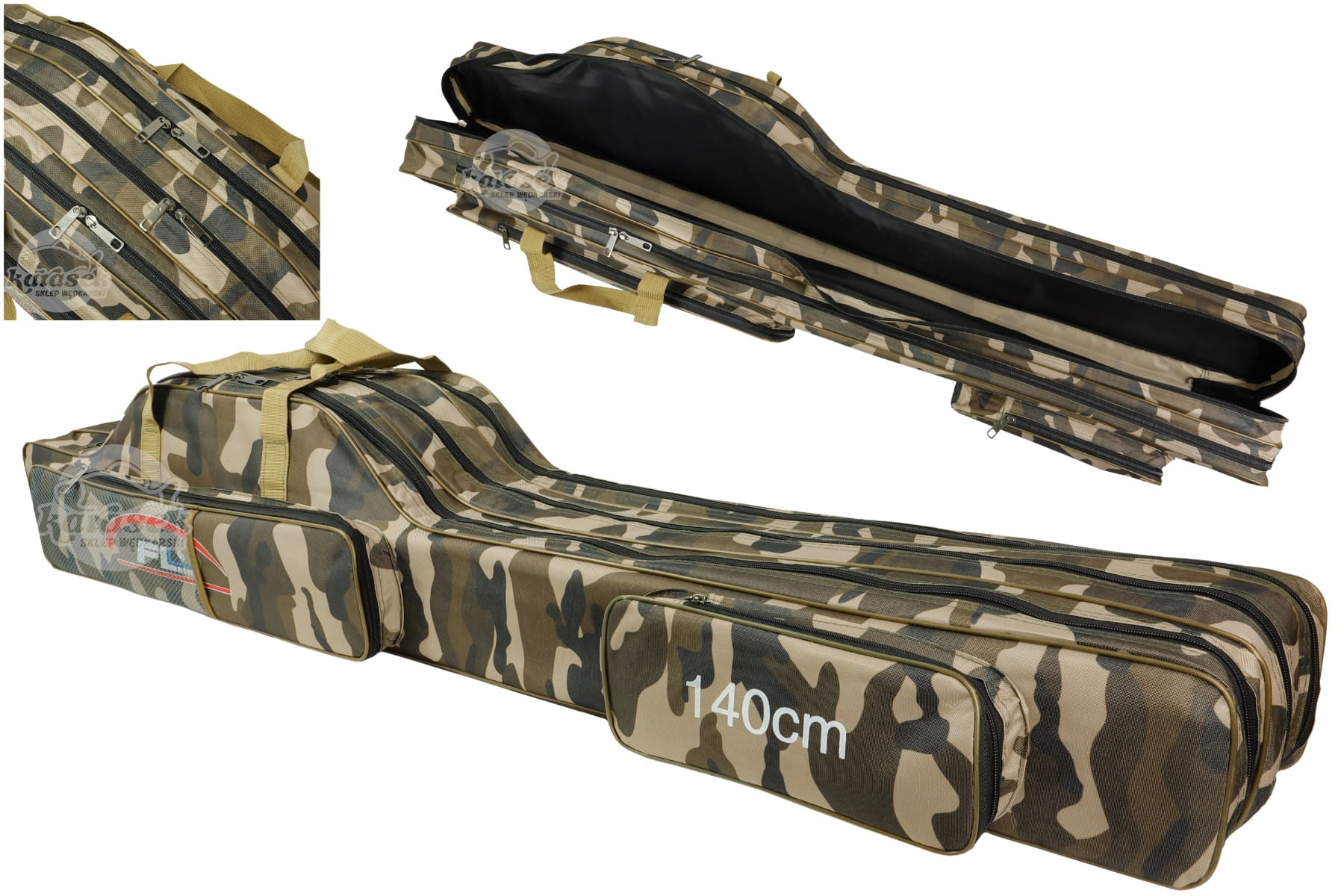 FL pokrowiec torba na wędki moro 140 cm 3 komory usztywniany