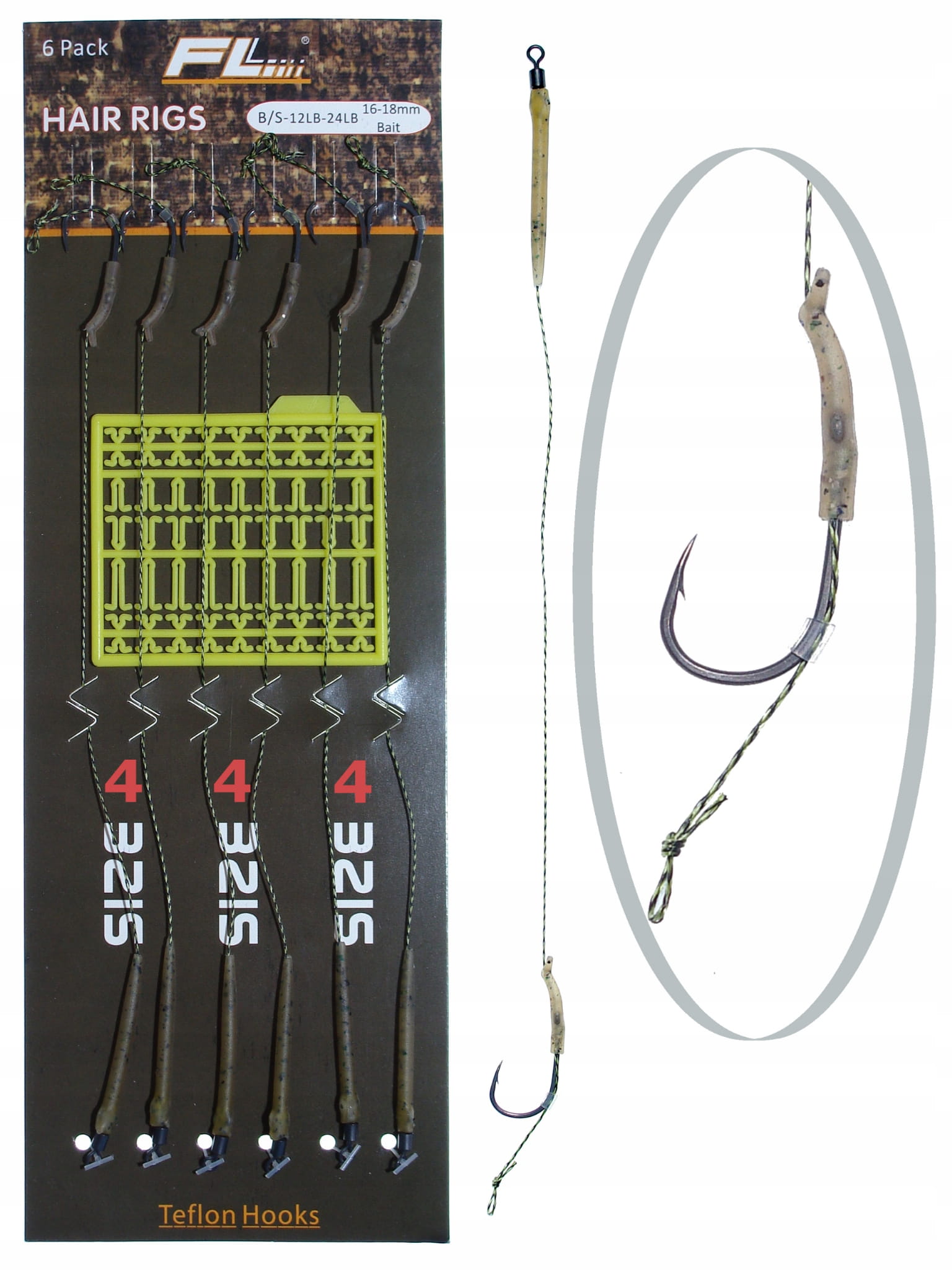 Przypony włosowe FL teflonowy haczyk 4 z pozycjonerem