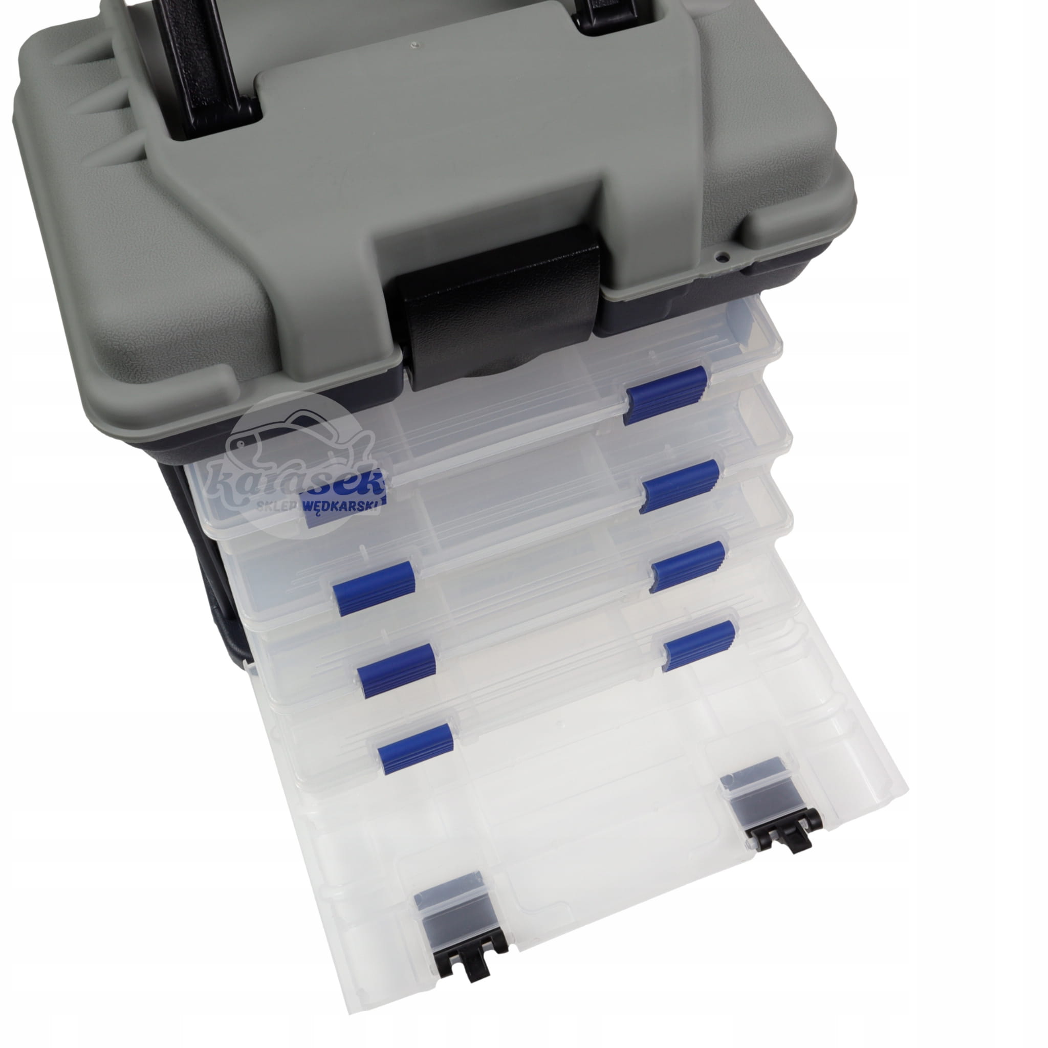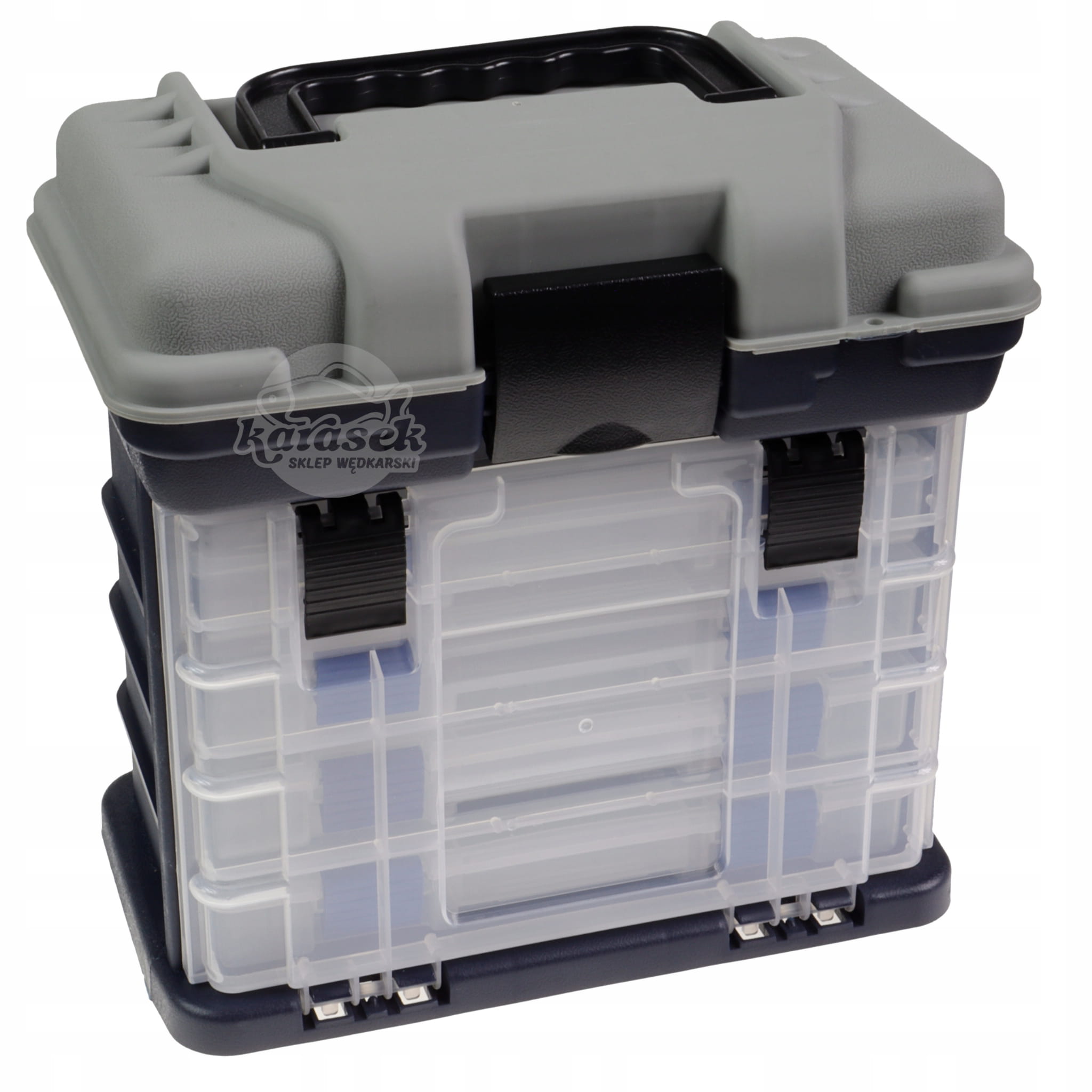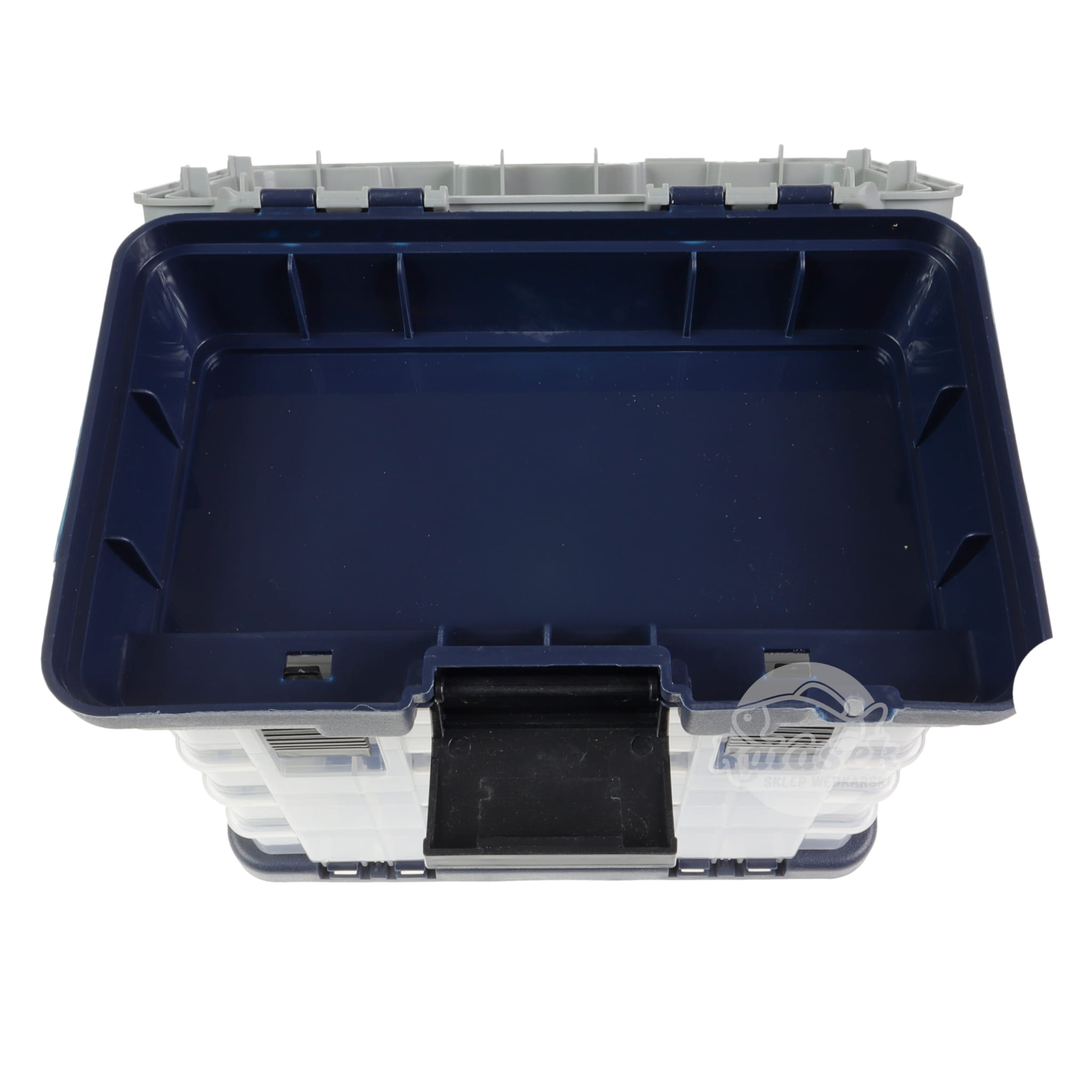 Pojemna skrzynka wykonana z wysokiej jakości tworzywa. Otwierane wieko w której ukryty jest dodatkowy schowek. Wyposażona w pudełka z regulowanymi przegrodami, które umożliwiają rozmieszczenie akcesoriów wędkarskich według indywidualnych potrzeb.