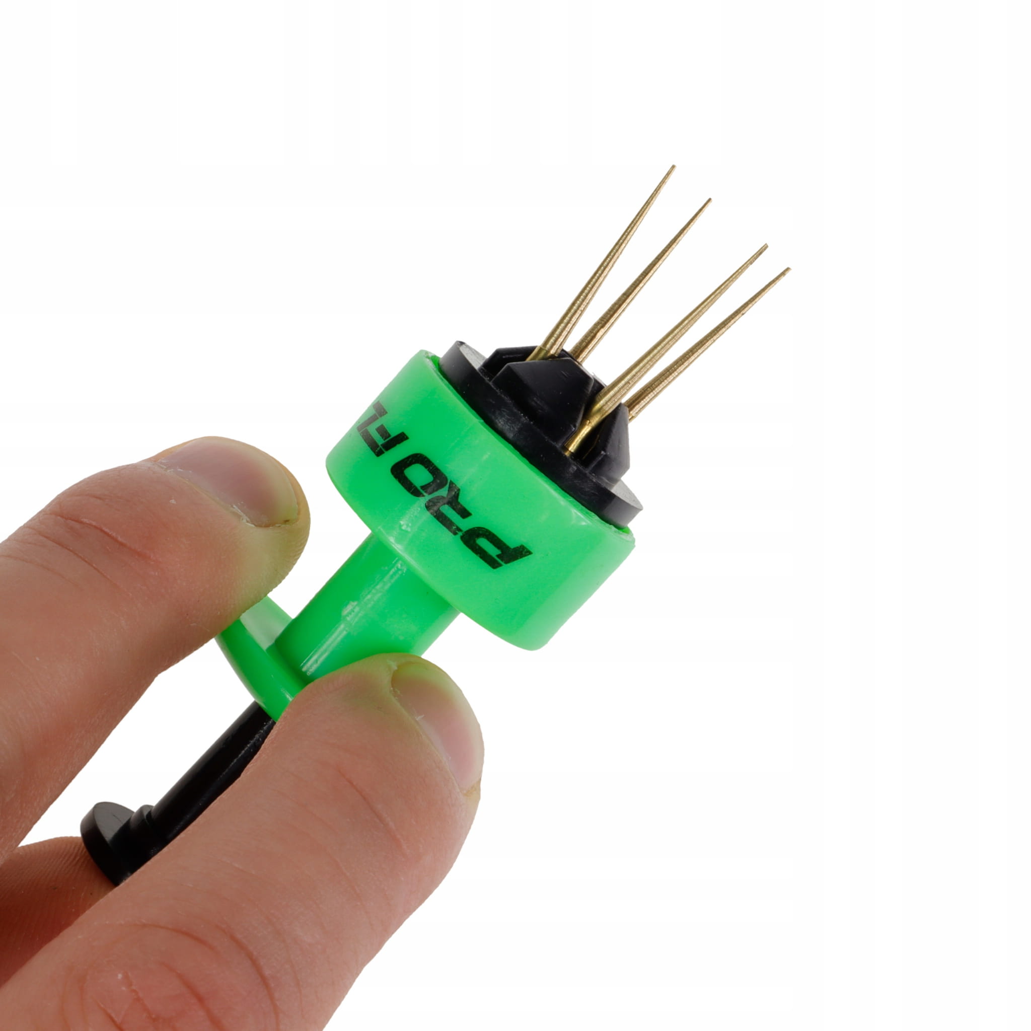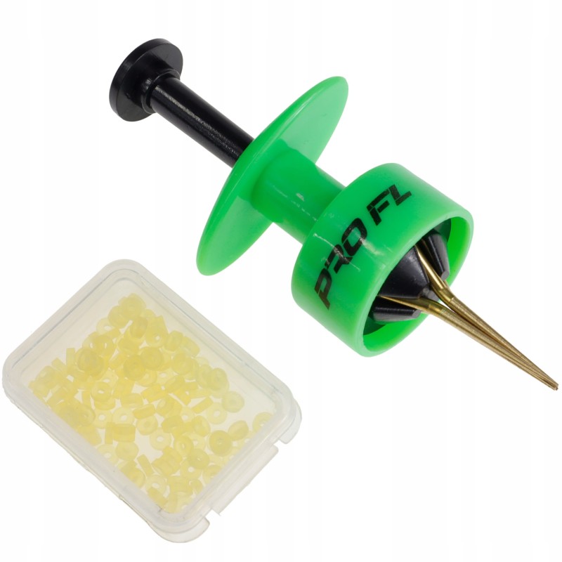 Wystarczy nałożyć gumkę na 4 zaciśnięte pręciki a następnie nacisnąć przycisk u góry przyrządu, żeby rozszerzyć gumkę na włosie do której włożymy wybraną przynętę, po czym zwalniamy przycisk i gotowe. Pręciki po puszczeniu przycisku wracają do pozycji złożonej, dzięki zastosowaniu sprężyny, co wyróżnia je na tle tańszych odpowiedników.