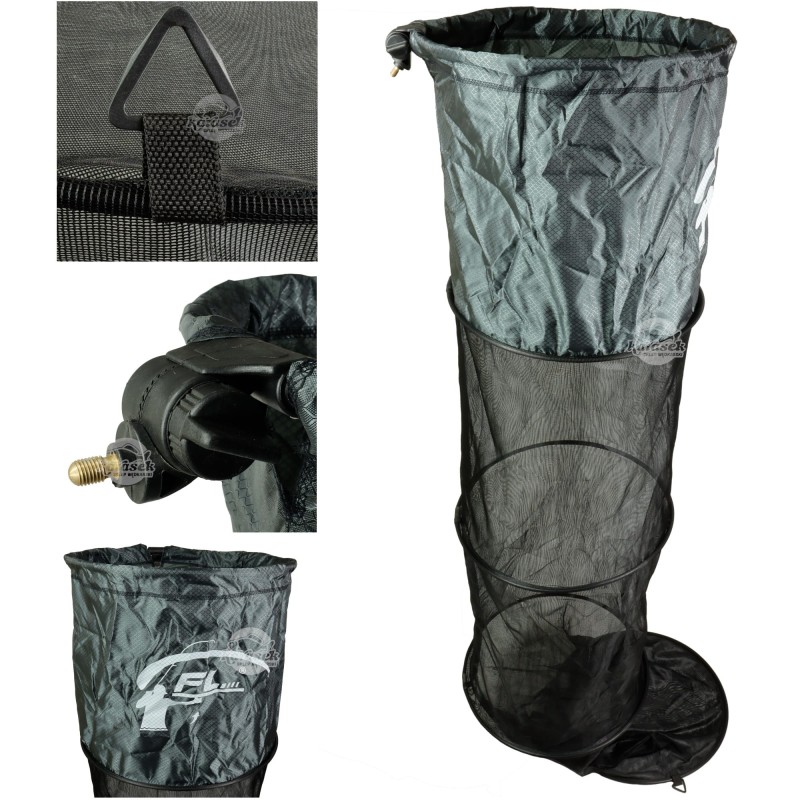 Wykonana z wysokiej jakości miękkiej, bezpiecznej dla ryb siatki o drobnym oczku. Pierwsza obręcz z aluminium, pozostałe z solidnego tworzywa. Wbudowany uchwyt na sztycę z regulacją kąta pochylenia.