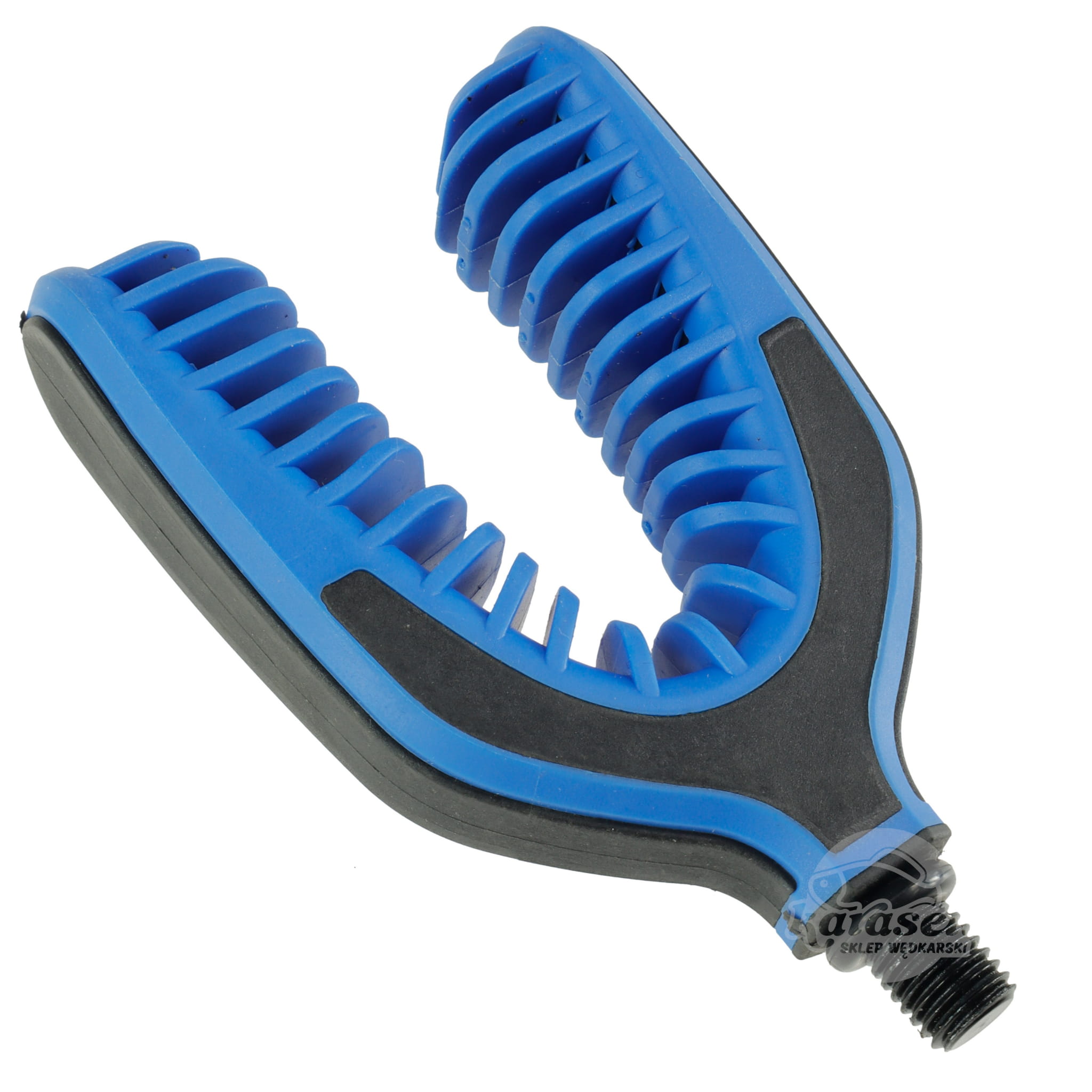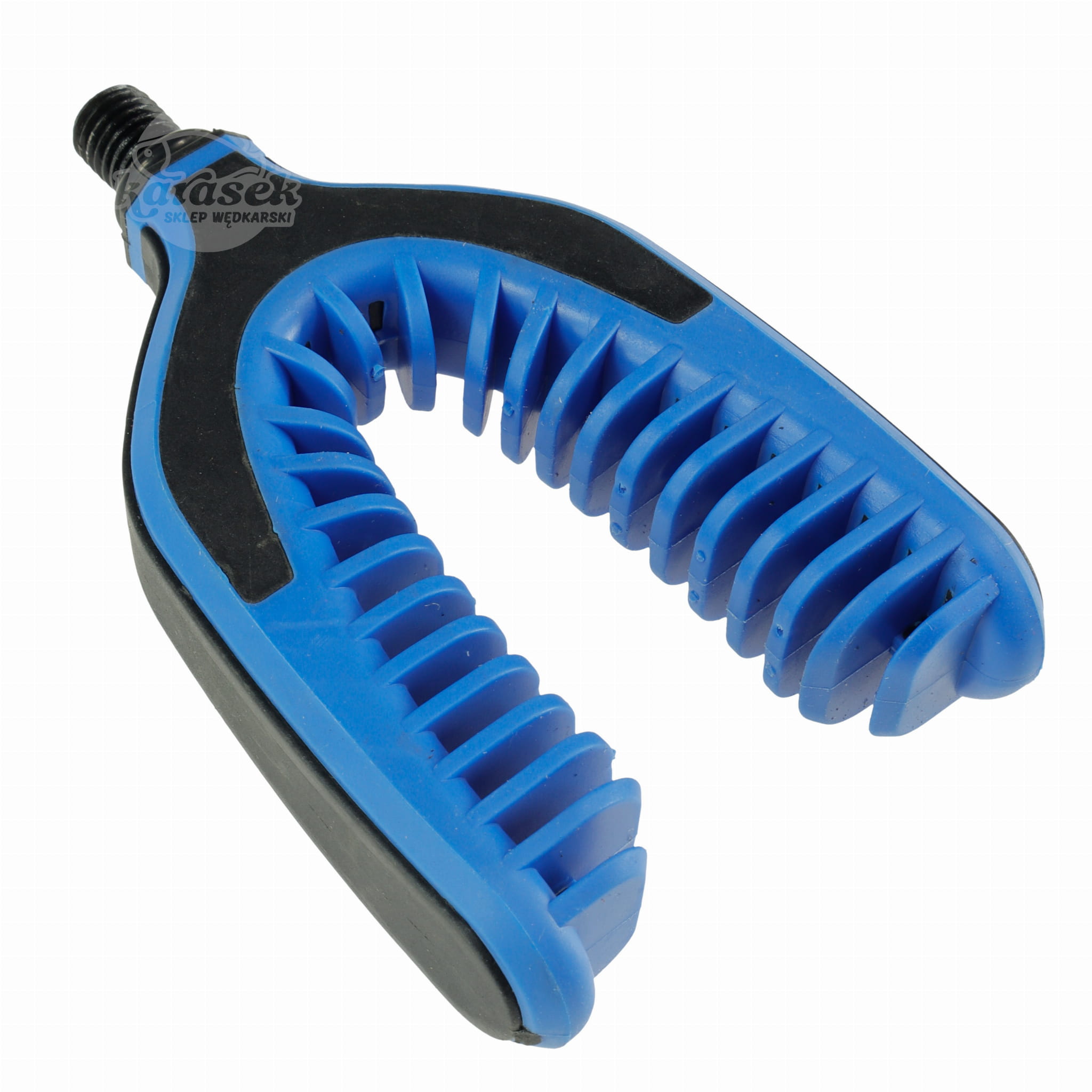 Wykonana z gumowanego tworzywa. Wyposażona w specjalne gumowe wypustki do chwytania dolnika wędziska. Dzięki swojej konstrukcji idealnie zabezpiecza wędzisko przed wciągnięciem do wody podczas agresywnego brania. Wyposażona w standardowy metalowy gwint z gumowym oringiem ułatwiającym regulację.