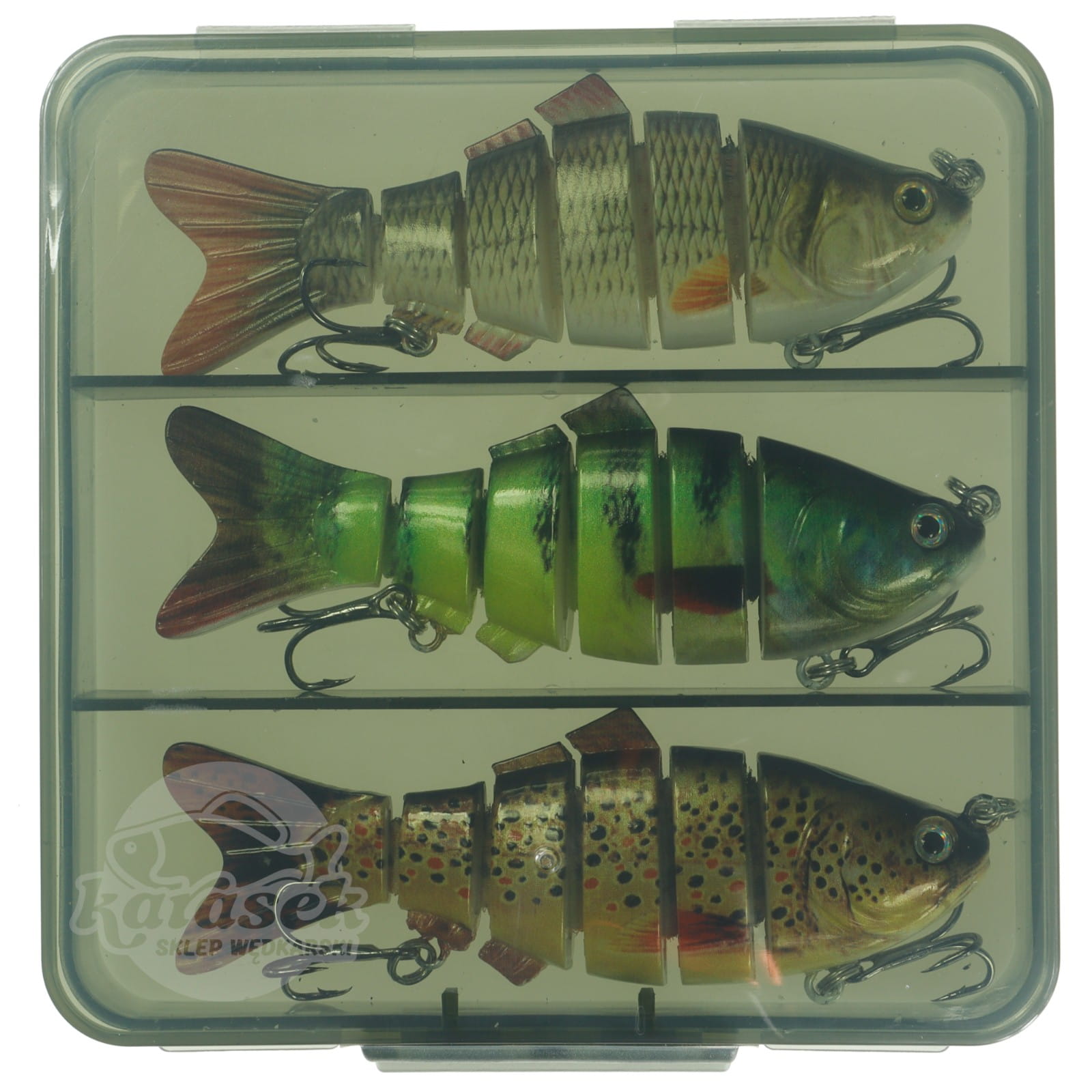 Idealne przynęty na drapieżniki. Podczas prowadzenia skokami (podbicia szczytówką), czy nieregularnego zwijania linki zachowują się jak prawdziwe chore ryby, wijąc się na boki, do góry i na dół. Sekcje woblerów połączone są ze sobą elastyczną wytrzymałą taśmą. Oczy 3D wraz z idealnym odwzorowaniem detali tworzą niesamowity efekt "żywej ryby". Dzięki temu, że woblery są wolno tonące możemy uzyskać liniowe prowadzenie przynęty na wybranej przez nas głębokości. Kilkukrotnie lakierowane wykonane z tworzywa ABS odpornego na uszkodzenia mechaniczne.