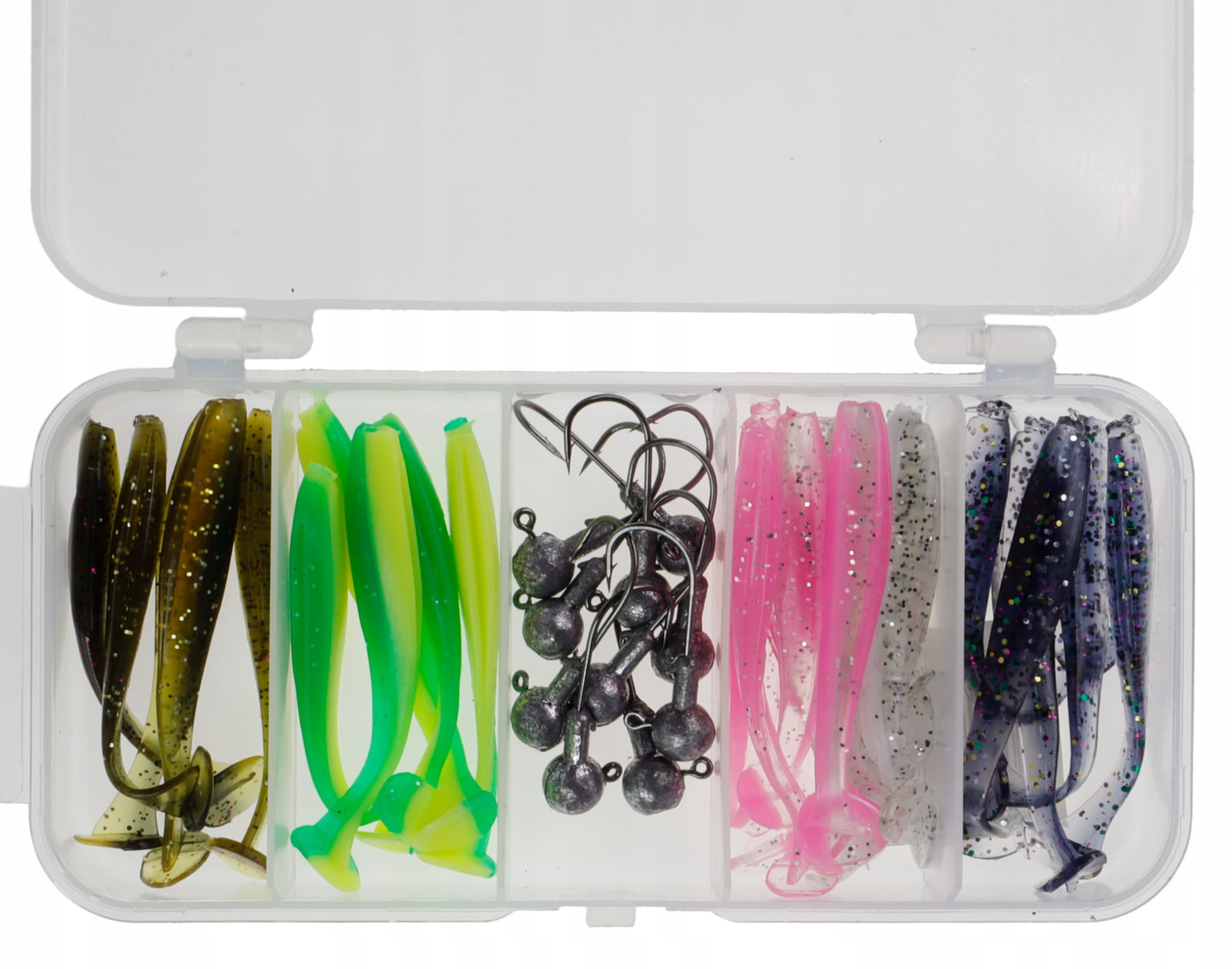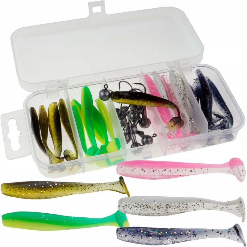 Zestaw zawiera przynęty idealne na okonie, jazie, klenie i nie tylko. Różnorodność kolorów pozwala trafić w gust nawet słabo żerujących ryb. Sprawdzi się zarówno dla początkujących jak i profesjonalnych spinningistów.