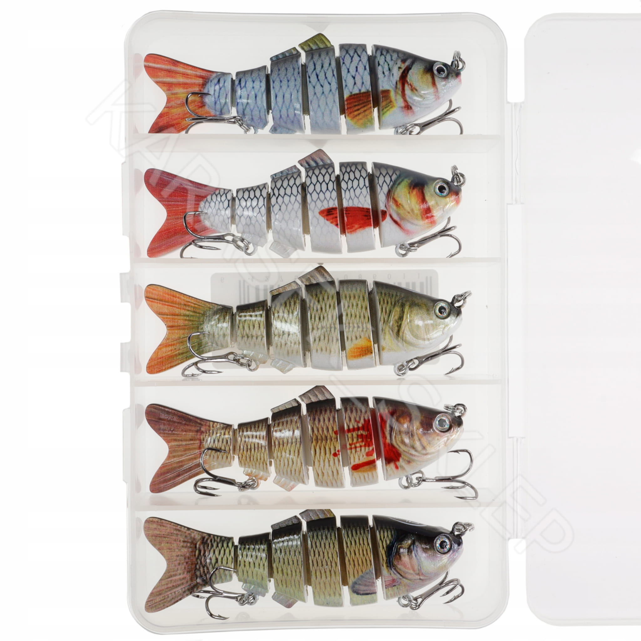 Idealne przynęty na drapieżniki. Podczas prowadzenia skokami (podbicia szczytówką), czy nieregularnego zwijania linki zachowują się jak prawdziwe chore ryby, wijąc się na boki, do góry i na dół. Sekcje woblerów połączone są ze sobą elastyczną wytrzymałą taśmą. Oczy 3D wraz z idealnym odwzorowaniem detali tworzą niesamowity efekt "żywej ryby". Dzięki temu, że woblery są wolno tonące możemy uzyskać liniowe prowadzenie przynęty na wybranej przez nas głębokości. Kilkukrotnie lakierowane wykonane z tworzywa ABS odpornego na uszkodzenia mechaniczne.