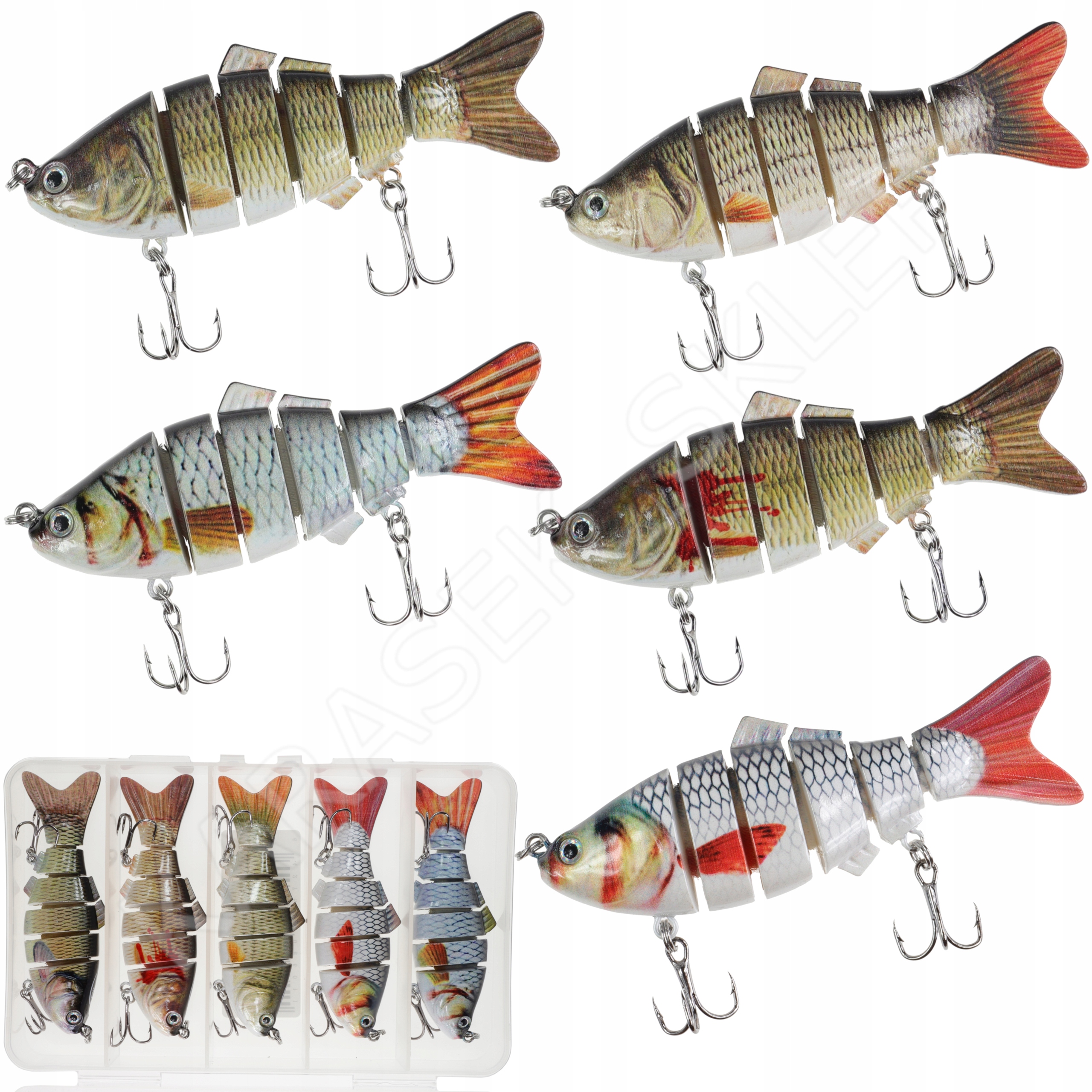Woblery łamane 10 cm 20 g wolno tonące 5 sztuk + pudełko