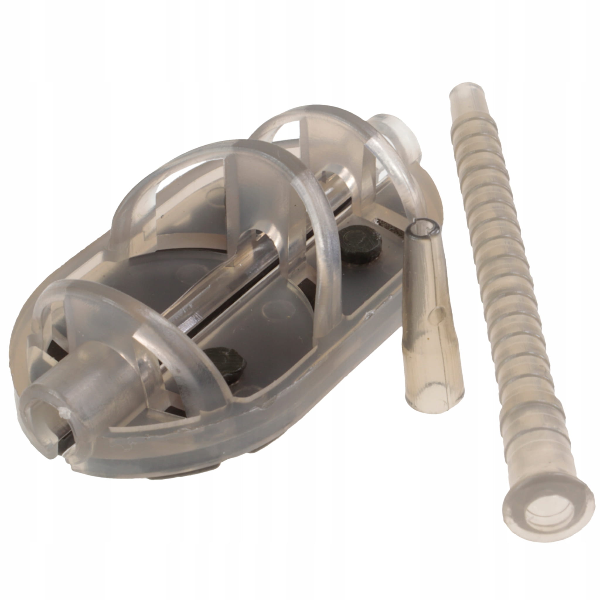 Nowoczesny podajnik zanętowy z systemem ICS (Inter Change System), umożliwiający błyskawiczną wymianę koszyka bez konieczności rozbrajania zestawu.
