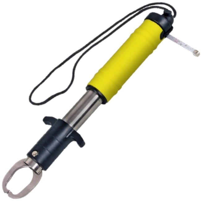 Idealne narzędzie do chwytania i wciągania ryb np. na łódź. Stalowa konstrukcja, gumowana, antypoślizgowa rękojeść i sznurek z klipsem podnosi komfort użytkowania. Wyposażony w wagę analogową max 22 kg oraz miarkę 1 m.