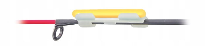 Uchwyt umożliwiający stabilne przymocowanie świetlika do szczytówki. Szczególnie przydatny podczas wędkowania feederem. Po naświetleniu świeci w ciemności.