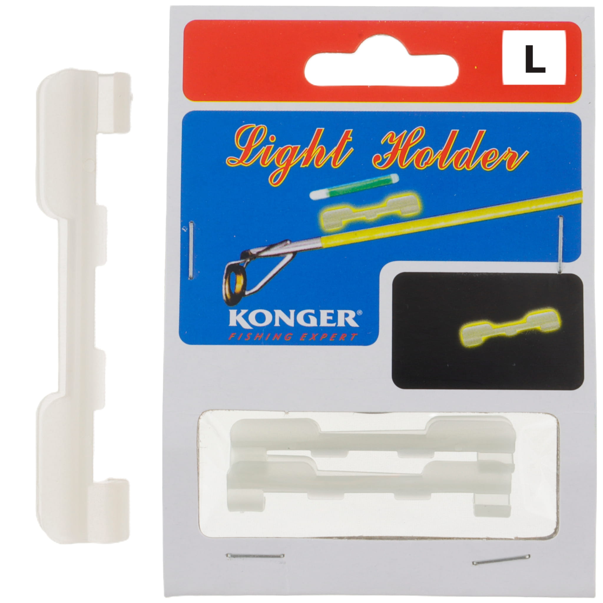 Uchwyt umożliwiający stabilne przymocowanie świetlika do szczytówki. Szczególnie przydatny podczas wędkowania feederem. Po naświetleniu świeci w ciemności.