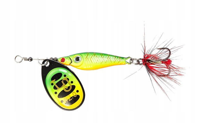 Lucky John Trian Blade 6 g (rozmiar 2) to klasyczna, bardzo lotna obrotówka która startuje natychmiast po zetknięciu z wodą. Paletka pracuje pod kątem 30°, dzięki czemu przynęta stawia minimalny opór i świetnie radzi sobie również w nurcie.