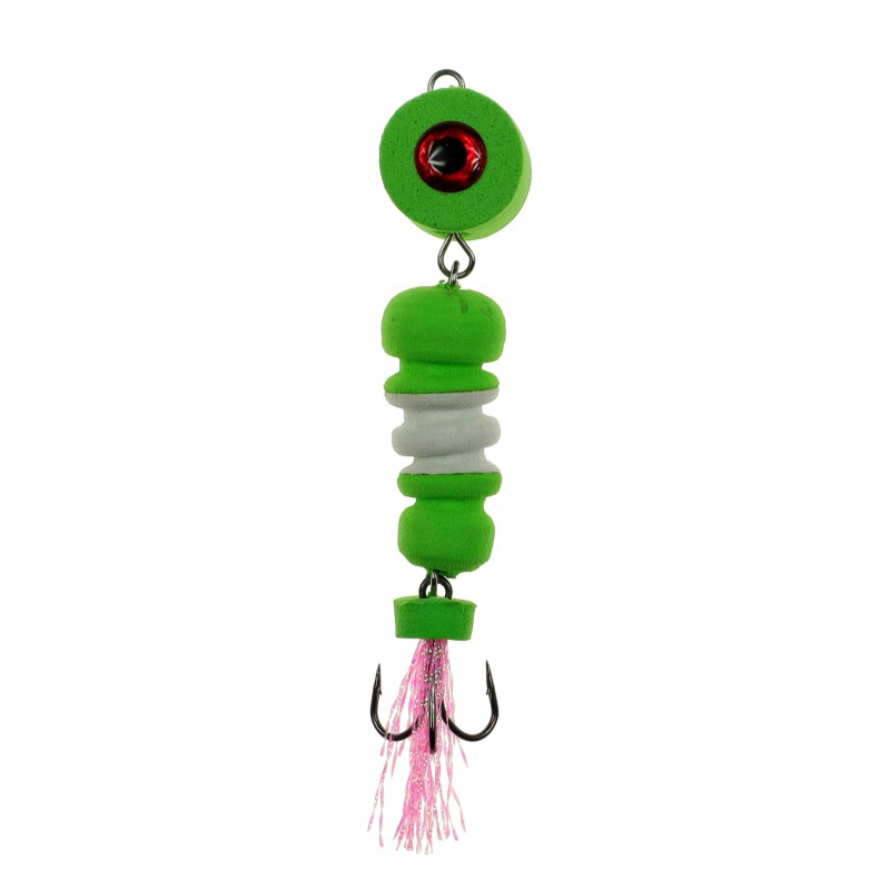 Po dociążeniu czeburaszką jest to idealna przynęta na sandacza ale  sprawdzi się również przy połowie szczupaków jak i okoni. Wykonana została z pianki EVAostrych potrójnych kotwic i elementów łączących.