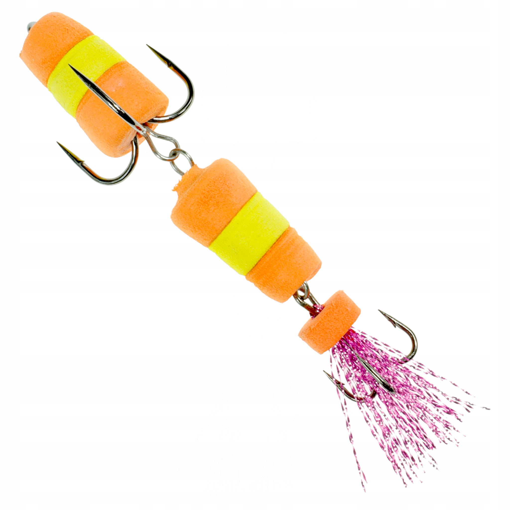 Po dociążeniu czeburaszką jest to idealna przynęta na sandacza ale sprawdzi się również przy połowie szczupaków jak i okoni. Wykonana została z pianki EVA, ostrych potrójnych kotwic i elementów łączących.