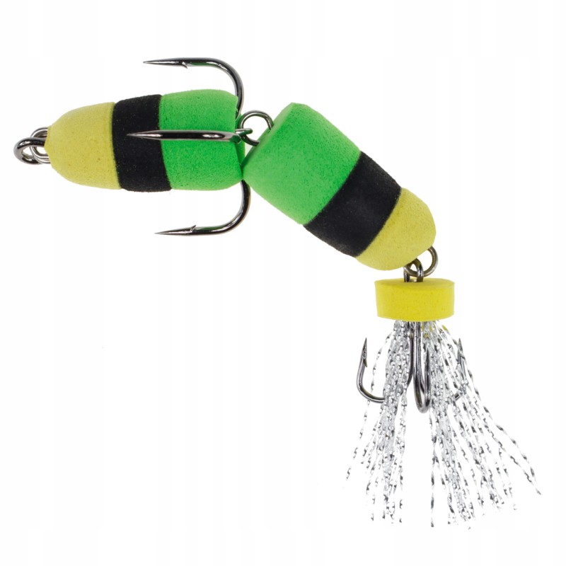 Po dociążeniu czeburaszką jest to idealna przynęta na sandacza ale  sprawdzi się również przy połowie szczupaków jak i okoni. Wykonana została z pianki EVA, ostrych potrójnych kotwic i elementów łączących.