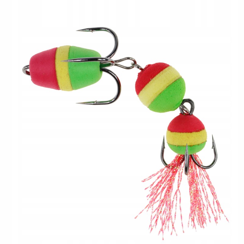 Po dociążeniu czeburaszką jest to idealna przynęta na sandacza ale sprawdzi się również przy połowie szczupaków jak i okoni. Wykonana została z pianki EVA, ostrych potrójnych kotwic i elementów łączących.