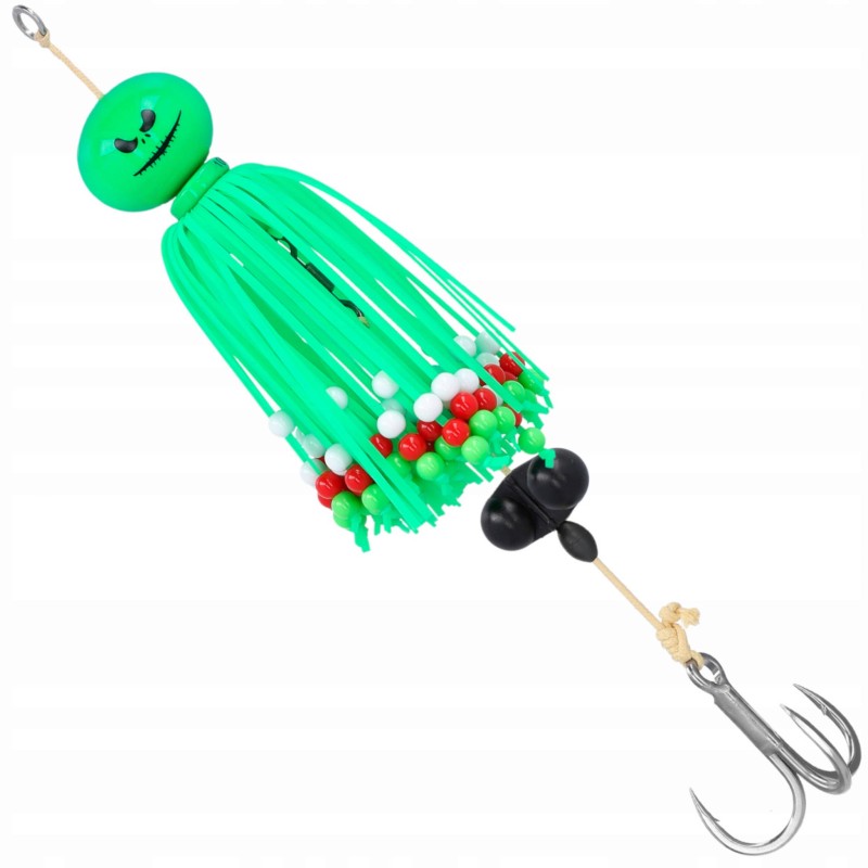 Przynęta sumowa zaprojektowana do połowu przy pomocy kwoka. Jej głównym atutem jest wygląd i dźwięk, który w pierwszym etapie powoduje zainteresowanie a w drugim atak. Potrafi otworzyć nie jedno ciężkie technicznie łowisko, oraz takie w którym sumy widziały już praktycznie wszystko! Oprócz specjalnych koralików, przynęta została dodatkowo wzbogacona grzechotką, która w fazie testów wzbudziła wielkie interesowanie prawdziwych okazów. Wyposażona w najwyższej klasy plecionkę i kotwicę, dzięki której nie musisz martwić się o rybę życia. Jeśli chcesz podnieść atrakcyjność BOGEY nie zapomnij o kilku rosówkach na kotwiczkach.