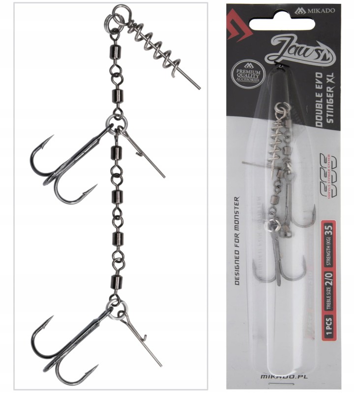 Dozbrojka z krętlików 11,5 cm 35 kg kotwica 2/0 Mikado JAWS DOUBLE EVO STINGER XL 1 szt