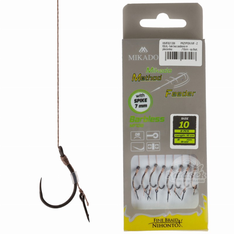 Mikado haczyki 10 BEZZADZIOROWE MF13B z przyponem igła plecionka