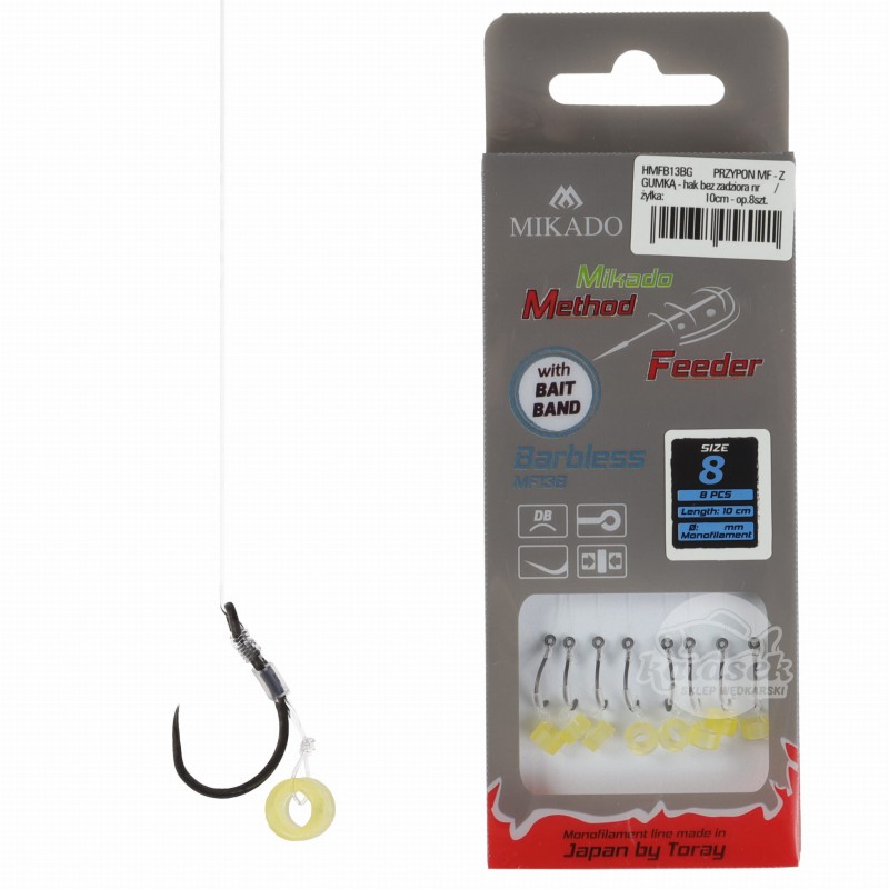 Mikado haczyki 8 BEZZADZIOROWE MF13B z przyponem gumka żyłka