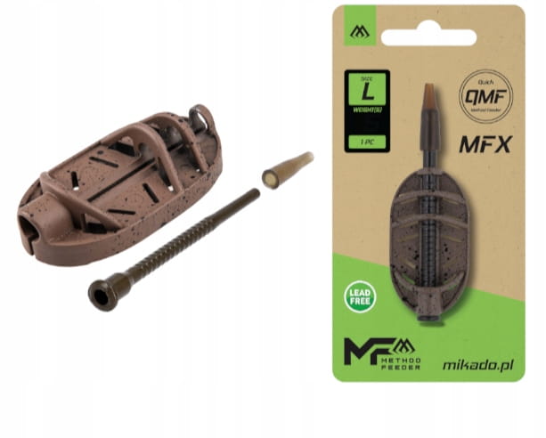 Podajnik Mikado MFX Q.M.F to profesjonalny koszyczek stworzony z myślą o precyzyjnym i dalekim łowieniu na Method Feeder.