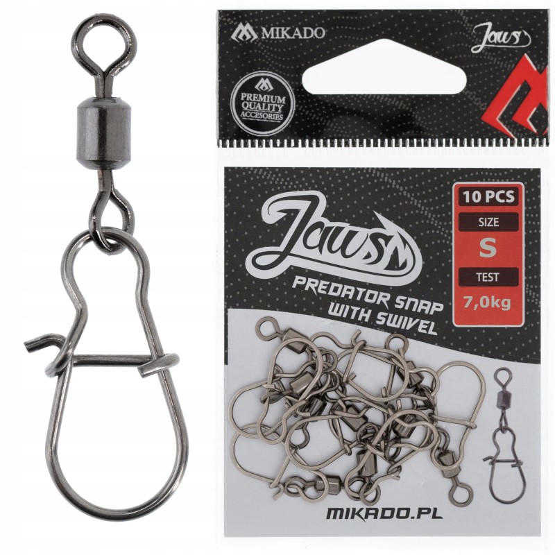 Wytrzymałe krętliki rolkowe z agrafką PREDATOR SNAP w rozmiarze S