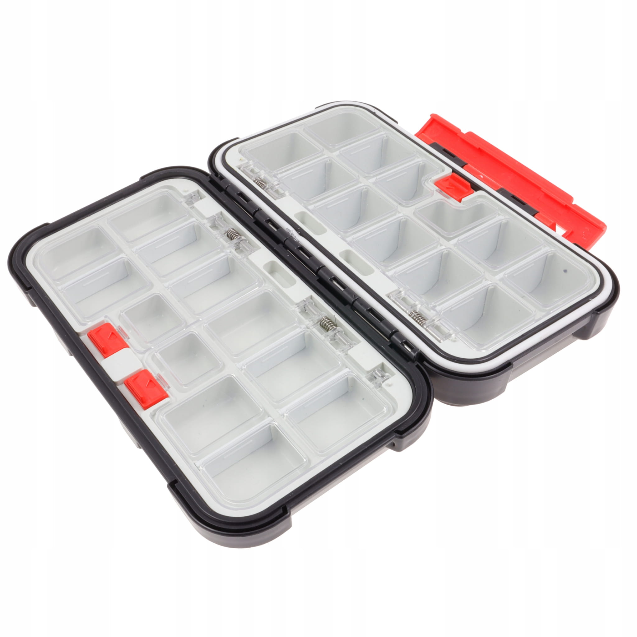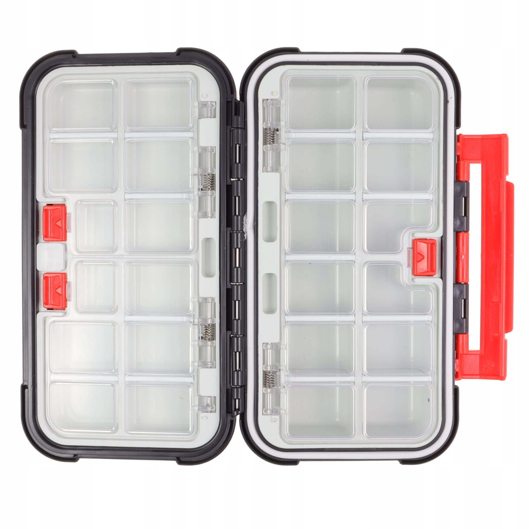 Wykonany z wysokiej jakości tworzywa. Posiada 24 regulowane przegródki, które umożliwiają rozmieszczenie akcesoriów wędkarskich według indywidualnych potrzeb.