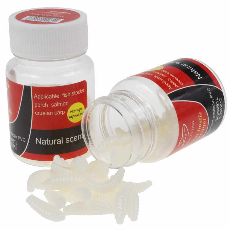 Aromatyzowany sztuczny biały robak 20 mm 50 sztuk