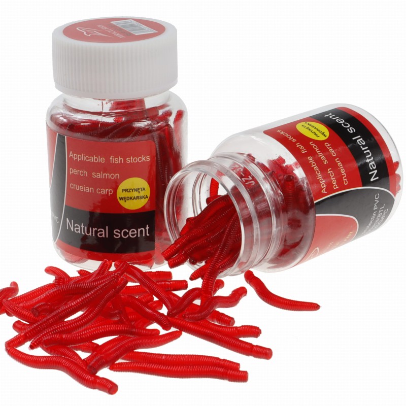Aromatyzowany sztuczny czerwony robak 35 mm 100 sztuk