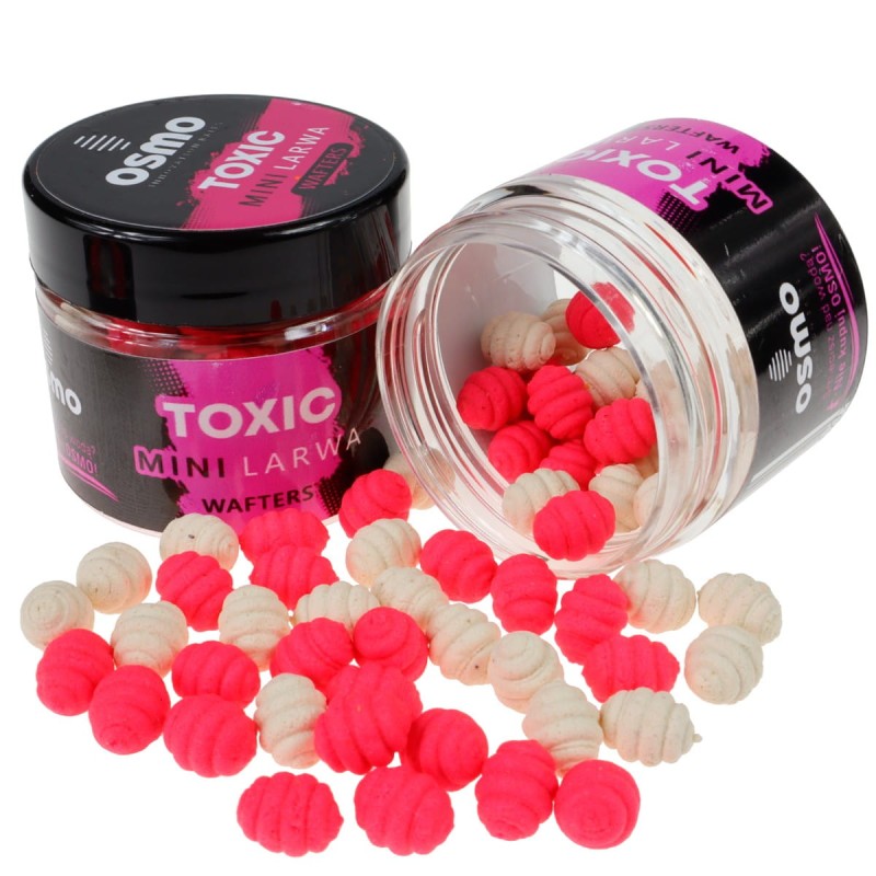 Osmo Mini Larwa TOXIC to idealna zbalansowana przynęta do połowów na Method Feeder. Mix koloru różowego oraz białego przykują uwagę nawet słabo żerujących ryb. Przynęta idealnie sprawdzi się do montażu na bagnecie lub gumce.Jak wszystkie Larwy; TOXIC mają sporą wyporność jak na waftersy, haki które je balansują to rozmiary 8, 10, 12 (ważne: balansujemy larwy hakami nie bagnetami)