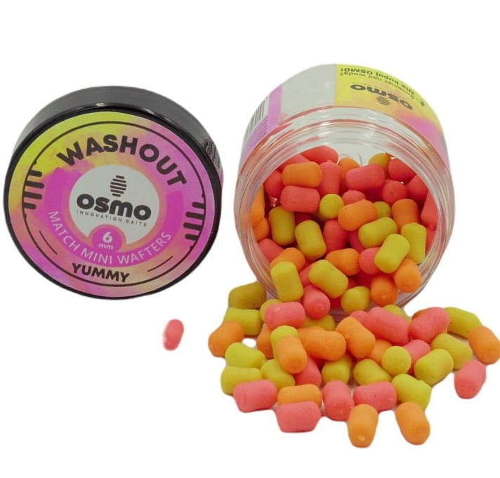 Mix trzech stonowanych kolorów (fiolet, róż, pomarańczowy) oraz zmysłowy, kuszący, słodki aromat tych przynęt nie pozwala żadnej rybie przepłynąć obok nich obojętnie. Cała seria Mini Wafters jest dopasowana wypornością do haczyków od rozmiaru 12 z grubego drutu w dół. Są to waftersy o wymiarach 6x9 mm, dzięki tym rozmiarom świetnie się prezentują i są dobrze widoczne na tle podajnika.