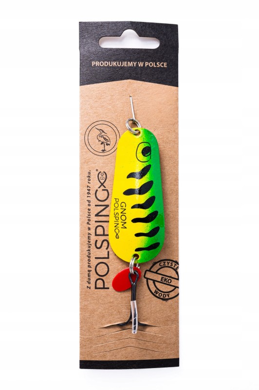 Klasyczna wahadłówka Polsping Gnom w efektownym kolorze Green Tiger to niezawodna przynęta na duże drapieżniki. Charakteryzuje się agresywną, migotliwą pracą, która skutecznie prowokuje drapieżniki nawet w chłodniejszej wodzie.