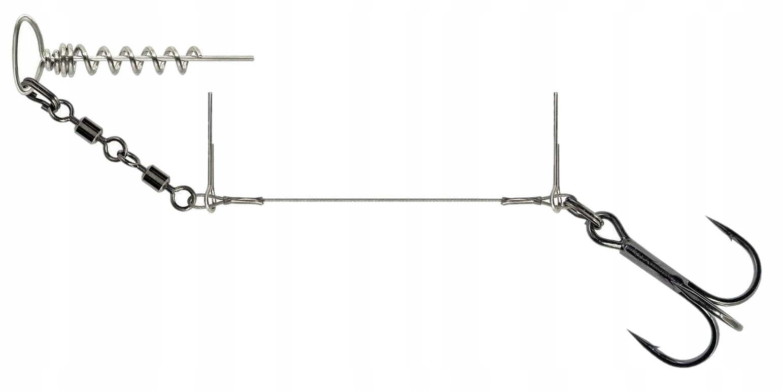 Idealny system do spinningowania luźnymi przynętami typu swimbait. Upside Corkscrew zapewnia miękkim przynętom bardzo dobrze wyważoną akcję i jest praktyczny dzięki owalnemu pierścieniowi, który przechodzi przez nos i blokuje się na swoim miejscu. Podwójny krętlik, przesuwane kolce stingerów, drut Carbon49 i bardzo ostre kotwice SGY sprawiają, że dozbrojki są bardzo skuteczne.