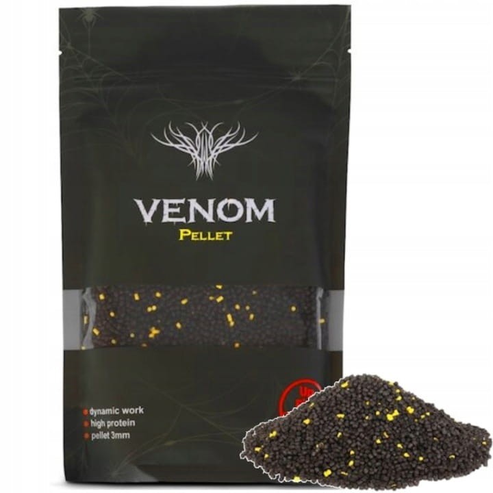 Znakomita propozycja dla miłośników nowoczesnego wędkarstwa gruntowego. Pellet Up Fish Venom o średnicy 3 mm to niezwykle skuteczny, wysokobiałkowy pellet, stworzona specjalnie pod technikę Method Feeder. Unikalna receptura oparta na doskonałych mączkach rybnych gwarantuje rewelacyjne rezultaty podczas polowania na największe okazy. Optymalna granulacja (3 mm) świetnie ogranicza brania drobnicy, pozwalając skupić się na łowieniu ostrożnych karpi. Czarna barwa przełamana żółtymi drobinkami tworzy intrygujący efekt wizualny na dnie łowiska. Solidne opakowanie (800 g) wyposażone w strunowe zamknięcie zapewnia niesamowitą świeżość towaru przez bardzo długi czas.
