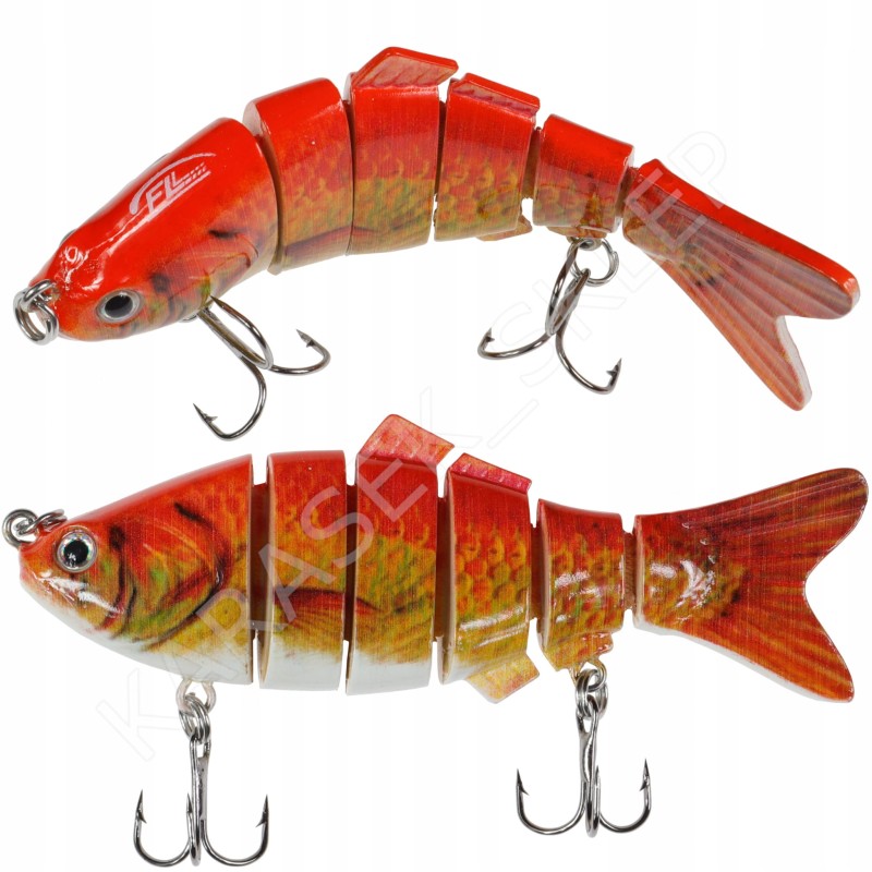 Idealna przynęta na drapieżniki. Podczas prowadzenia skokami (podbicia szczytówką), czy nieregularnego zwijania linki zachowuje się jak prawdziwa ryba, wijąc się na boki. Sekcje woblera połączone są ze sobą elastyczną taśmą. Oczy 3D wraz z idealnym odwzorowaniem detali tworzą niesamowity efekt "żywej ryby". Dzięki temu, że wobler jest wolno tonący możemy uzyskać liniowe prowadzenie przynęty na wybranej przez nas głębokości. Kilkukrotnie lakierowany wykonany z tworzywa ABS odporny na uszkodzenia mechaniczne.