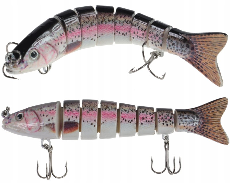 Idealna przynęta na drapieżniki. Podczas prowadzenia skokami (podbicia szczytówką), czy nieregularnego zwijania linki zachowuje się jak prawdziwa ryba, wijąc się na boki. Sekcje woblera połączone są ze sobą elastyczną taśmą. Oczy 3D wraz z idealnym odwzorowaniem detali tworzą niesamowity efekt "żywej ryby". Dzięki temu, że wobler jest wolno tonący możemy uzyskać liniowe prowadzenie przynęty na wybranej przez nas głębokości. Kilkukrotnie lakierowany wykonany z tworzywa ABS odporny na uszkodzenia mechaniczne.